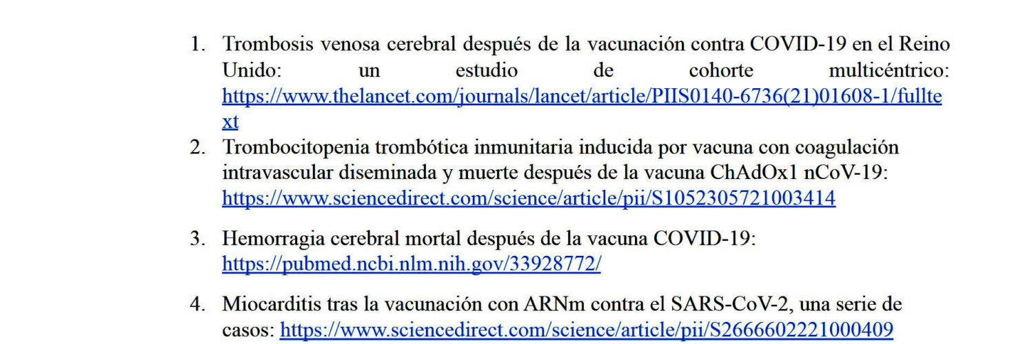 La siguiente lista de 860 estudios/reportes está recogida de Biólogos por la Verdad, más concretamente de la cuenta de difusión que tienen en Telegram.