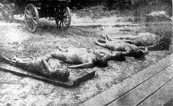 “Provincia de Yaroslavl, el 23 de junio de 1919. La sublevación de desertores en el volost de Petropavlovskaya ha sido sofocada. Las familias de los desertores han sido tomadas como rehenes. Cuando empezamos a disparar a una persona de cada familia, los Verdes comenzaron a salir de los bosques y se rindieron. Treinta y cuatro desertores fueron fusilados como ejemplo.”